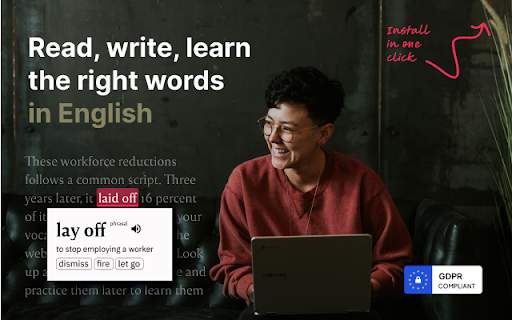 Elia ist ein praktisches Werkzeug für Englisch-Nicht-Anfänger, die ihren Wortschatz verbessern möchten. Direkt auf den Webseiten, die du durchsuchst, kannst du: