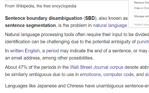 - i read a lot of scientific articles and they often come with abbreviations. it would be super nice if the extension has features to recognize them. for instance, the extension changes lines if it sees (i.e.). other than that this really helps me with my ADHD and minor dyslexia.