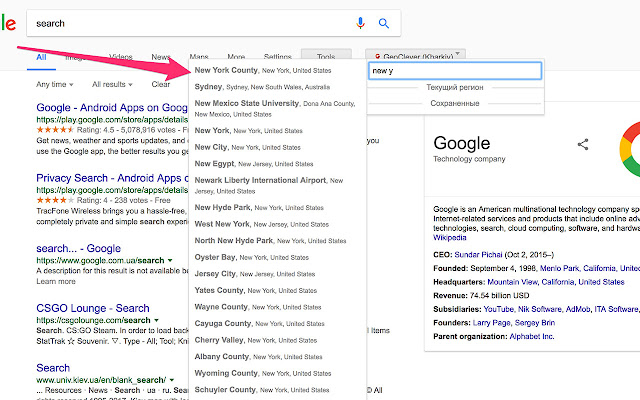 - ПЕРЕСТАЛО работать расширение (как и у многих), при нажатии на кнопку расширения в выдаче гугла, чтоб выбрать гео - ничего не происходит, т.е. уже невозможно выбрать какое-либо гео