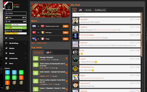 This extension provides only change for Erevoluttion browser game. It changes css stylesheet and provides u with dark theme instead of regular light one.
